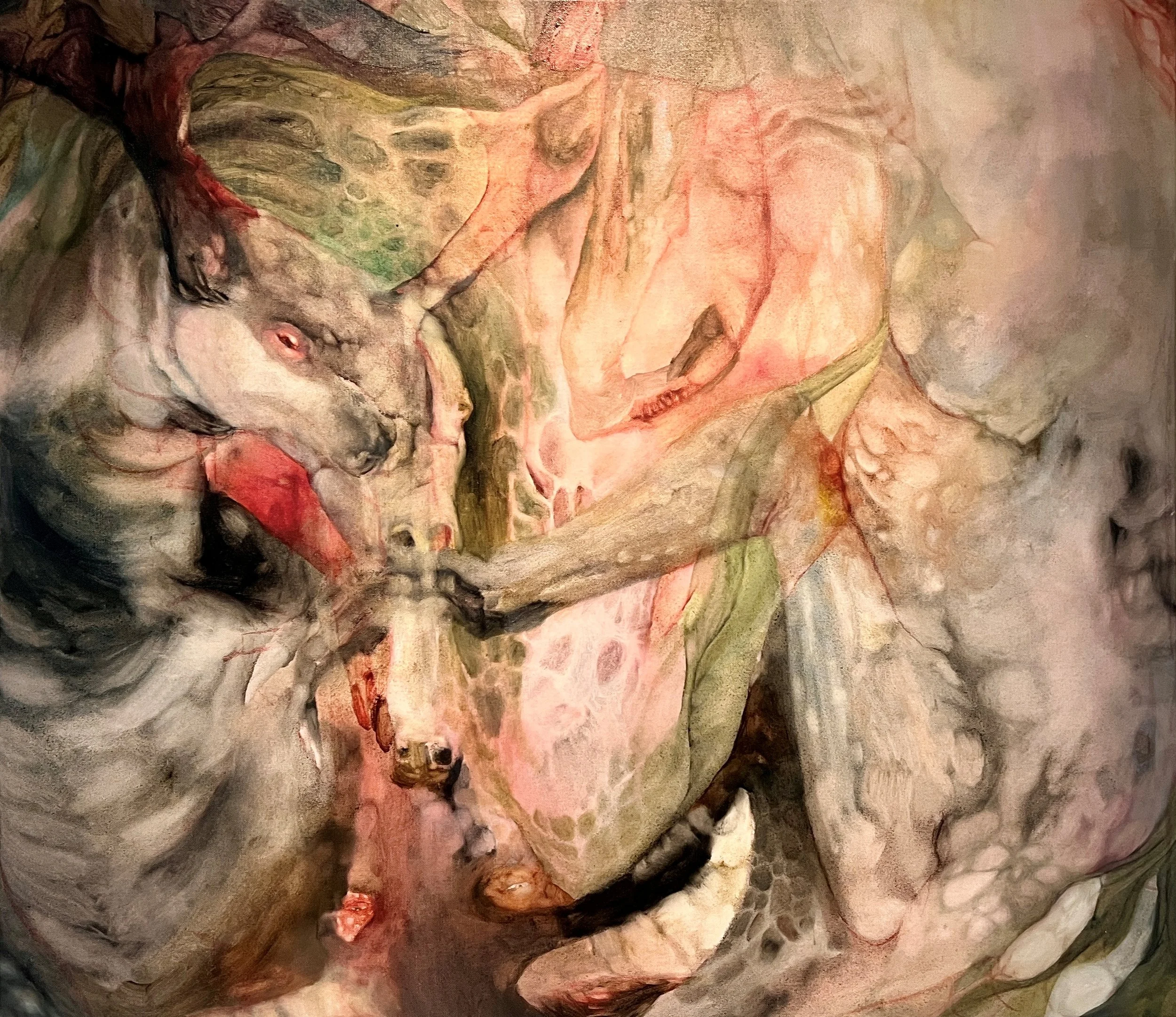 Alice Máselníková (f. 1989, Zlín, Tjeckien) är en bildkonstnär baserad i Edsbruk, Småland. Med tunna, genomskinliga färglager skapar hon drömlika skildringar av mytologiskt inspirerade motiv, groteska gestalter och svårfångade sagoväsen – en metamorfos mellan människa och djur som smälter samman med naturen. Hennes måleri bär spår av klassisk inspiration med referenser till medeltida konst samt symbolik kopplad till blommor, växter och träd. I en dämpad färgskala omslutas vi av hennes melankoliska bildvärld där det bisarra och ambivalenta vävas ihop med skönheten.